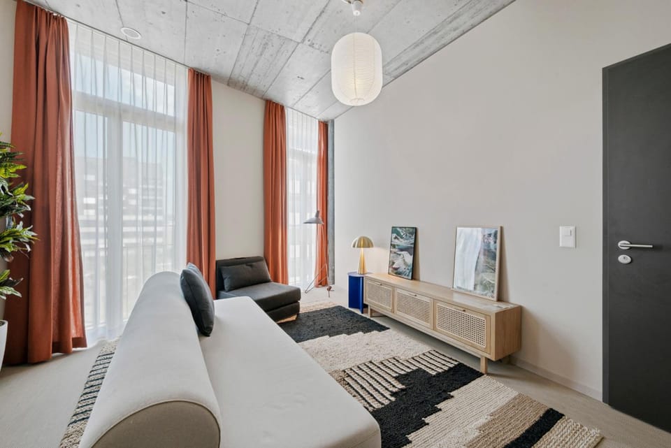 At Ariv Design Apartments Zug, the uniquely tailored rooms provide a configuration choice resembling a balcony or terrace.