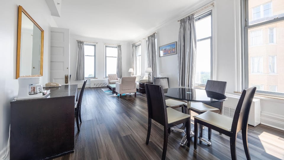 In limited designated zones, smoking is exclusively permitted. Crafted for coziness, every guestroom provides an array of features, guaranteeing a tranquil night's sleep while maintaining the level of comfort. For a more enjoyable stay, select rooms at hotel are equipped with linen service, blackout curtains and air conditioning. For certain chosen rooms, guests can enjoy in-room amusement like television, in-room video streaming and cable TV as a part of their stay. Rest assured that your hydration needs will be met, as some guestrooms are equipped with a refrigerator and a coffee or tea maker. It is worth noting that certain guest bathrooms feature a hair dryer and toiletries for your convenience. Each morning at Congress Plaza Hotel, a scrumptious, homemade breakfast kick-starts the day. Begin your holiday mornings right with your essential cup of coffee, offered daily at the cafe on-site.