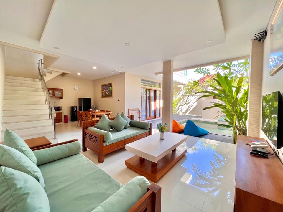 I’m so glad I booked this villa. It was a last minute thing but this villa is GREAT! Everything is exactly like the pics, well-maintained and clean. The room is very spacious for the two of us, with a separate living room and private pool. They also have a HUGE shared pool near the lobby which is very rare in Bali. I will definitely recommend this villa to friends and family