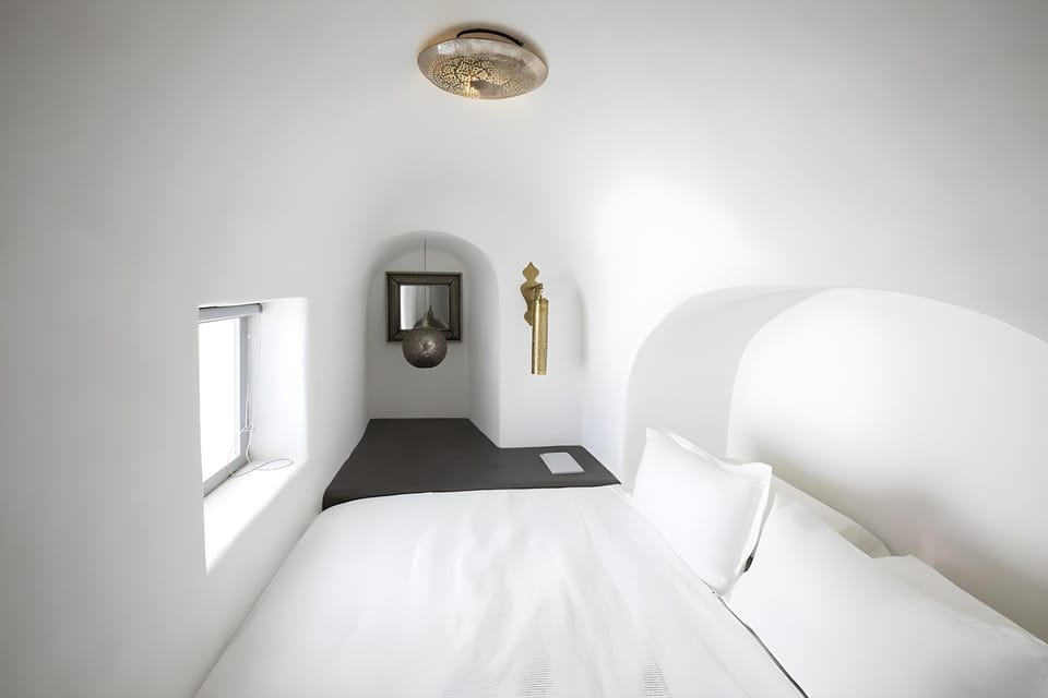At Ducato di Oia - Adults Only, various room configurations are available, featuring separate living room and balcony or terrace in some rooms.