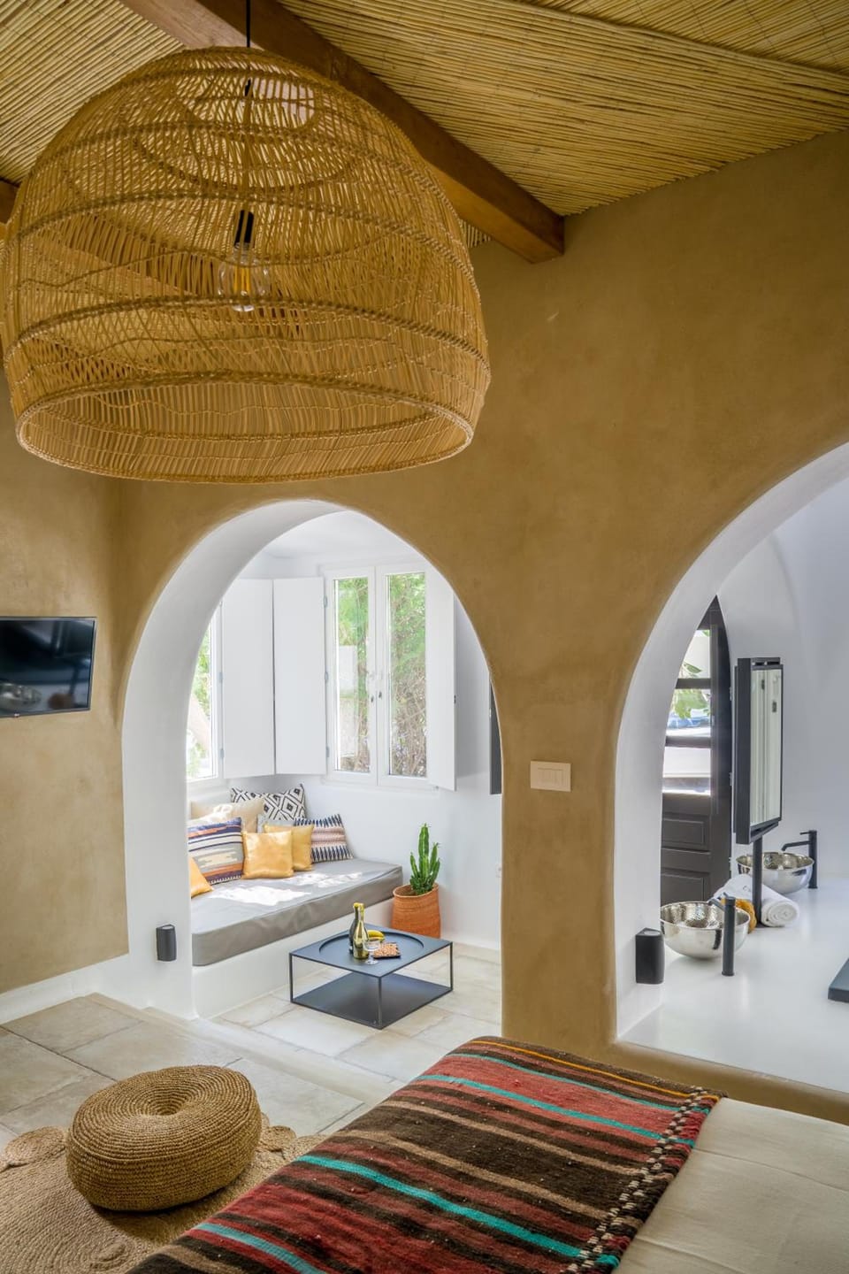 In certain rooms, the serviced apartment offers linen service and air conditioning for guest convenience and satisfaction. At Euphoria Chora Naxos, uniquely crafted rooms provide various layout choices, featuring spaces equipped with separate living room and balcony or terrace.