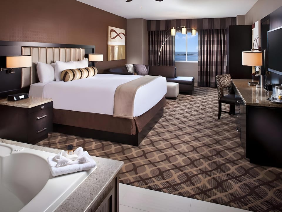 In order to ensure the utmost level of relaxation, the guestrooms feature an inviting design and are equipped with all basic necessities, creating a delightful stay experience. To ensure a pleasant stay, a selection of rooms at resort come furnished with linen service and air conditioning, all designed with your ease in mind. Several chosen accommodations at Golden Nugget Biloxi have a balcony or terrace incorporated into the room design. In select rooms, visitors can enjoy a touch of amusement with the availability of television and cable TV for their entertainment needs.