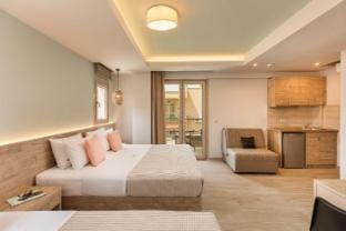 Crafted for coziness, every guestroom provides an array of features, guaranteeing a tranquil night's sleep while maintaining the level of comfort. At Makris Hotel - Olympian Collection, a selection of rooms can be found that showcase unique design elements such as a balcony or terrace.