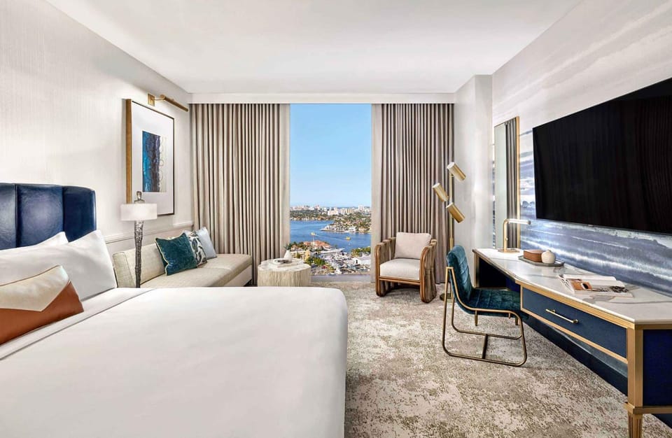 At Omni Fort Lauderdale Hotel, various room configurations are available, featuring separate living room and balcony or terrace in some rooms.