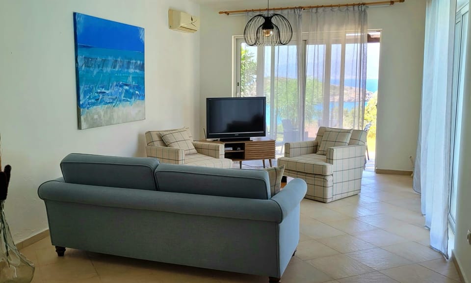 A few accommodations in Spacious villa with private pool and sea view, just 150 meters from the sea incorporate separate living room and balcony or terrace into their architectural arrangement. A number of rooms feature cable TV for guest amusement and enjoyment.