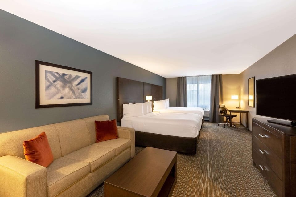 sofa sleeper, coffee table, workspace, refrigerator, coffee maker, cable tv and internet). Comfortable beds. Enjoyed pool and hot tub. Awesome breakfast selection.