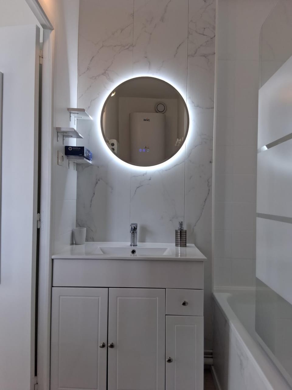 La deuxième pièces de l’autre côté du couloir présentée comme un lieu à bagages mais du coup peu pratique, le manque d’ergonomie du coin cuisine, le frigo qui nous a obligé à jeter de la nourriture car un jour pas froid du tout ! Le lendemain tout était congelé, et la baignoire qui ne permet pas de prendre de bain car bouchon de la baignoire enlevé et pour excuse ballon d’eau chaude de 80L sans aucune précision sur ce point dans l’annonce !