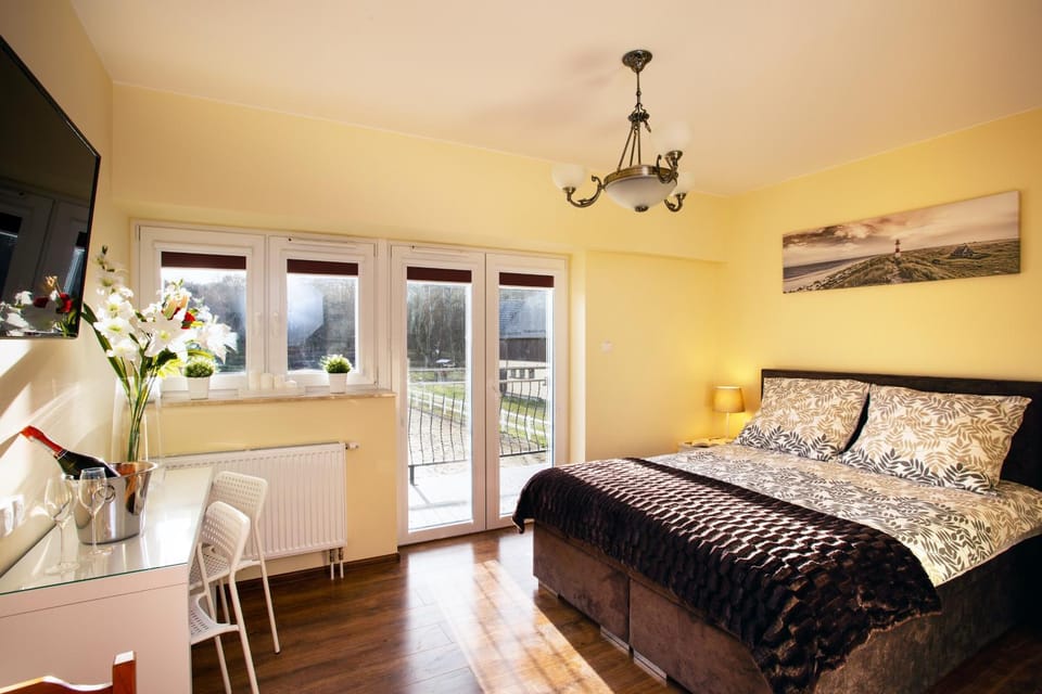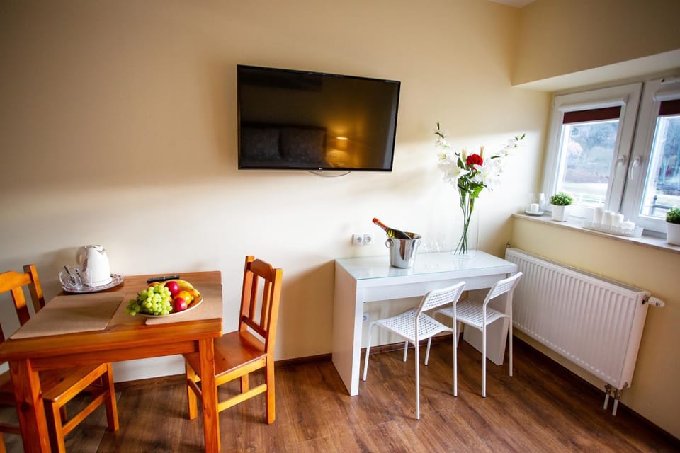 Bardzo przyjazna i spokojna atmosfera. Komfortowy pokój z łazienką, wygodne łóżko. Piękne widoki z końmi w parku, możliwość skorzystania z nauki jazdy konnej. Cisza i spokój oraz przepiękna plaża Ulinia! Bajecznie!