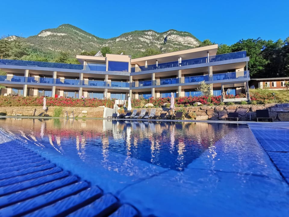Überragend ist die Aussicht vom Balkon und als besinderes Highlight aus der Sauna durch das Panoramafenster. Die Sonnenterrasse neben der Sauna und der sehr schön angelegte Garten mit dem Pool. Der Blick reichte nach Norden über Bozen und nach Osten über das Weisshorn bis zur Rotwand. Die Ruhige Lage ist auch hervorzuheben. Der überdachte Parkplatz gegenüber dem Apartrment. Alles in allem, wir kommen wieder.