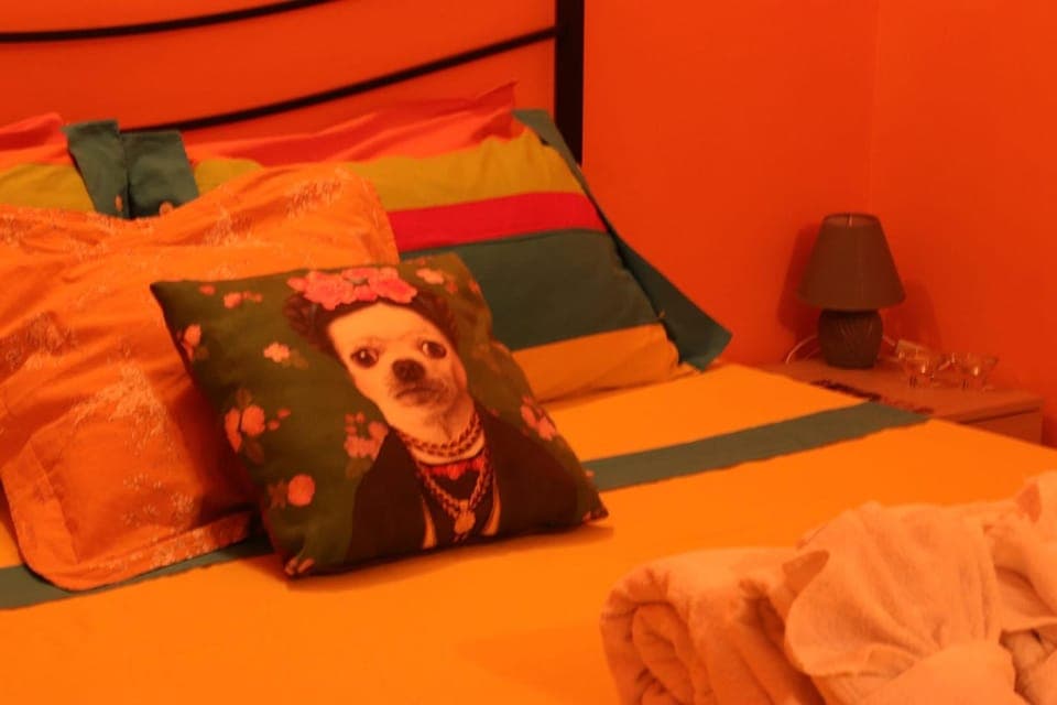 colore arancione di pitturazione delle pareti stanze da letto che secondo mia parere non si addicono ad un appartamento in un centro storico medievale molto bello. reti del letto un pochino rumorose. Stampelle per abiti brutte e insufficienti. Tv piccolino credo 20/24 pollici. nella stanza da letto. Oggi un 32 pollici smart costa da 150/200 euro.