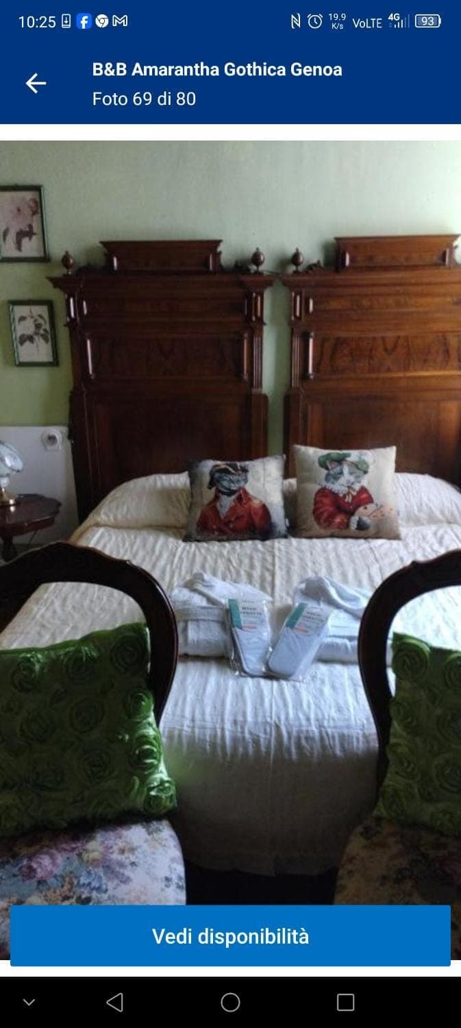 Vivere come in un film d’altri tempi in un Palazzo storico . Come “Gina Lollobrigida “ gli anni dei miei genitori che mi raccontavano e mi facevano vedere in TV .La posizione e’ ottimale ,per spostarsi anche con i mezzi pubblici ,per chi come noi ha preferito parcheggiare l’auto senza pensieri nel garage della struttura .Che dire:La scelta di Amarantha Gothica e’ stata piu’ che positiva con la cortesia dell’ host Silvia ,disponibile alle nostre esigenze ,ci siamo sentiti ospiti coccolati, accolti da una gradevole colazione .Ci ha saputo aiutare e suggerire come muoversi a Genova aperta alla conoscenza .