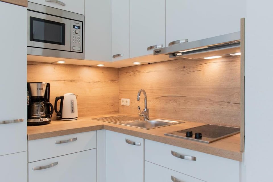 Leider gab es in der Wohnung keinen Geschirrspüler, und keine Waschmaschiene ! Die Mikrowelle war defekt und die Küche ist notbedürftig eingerichtet, viel zu klein mit 2 Kochplatten. Die Dusche harkt beim zu machen , es gibt keine Badezimmermöbel wo man Sachen verstauen kann und der Spiegel im Bad hängt so hoch, das man sich bei 1.70cm nur zu hälfte sehen kann . Eine große Entäuschung ist die Wohnung. Viel zu teuer und kein Comfort!!!!!