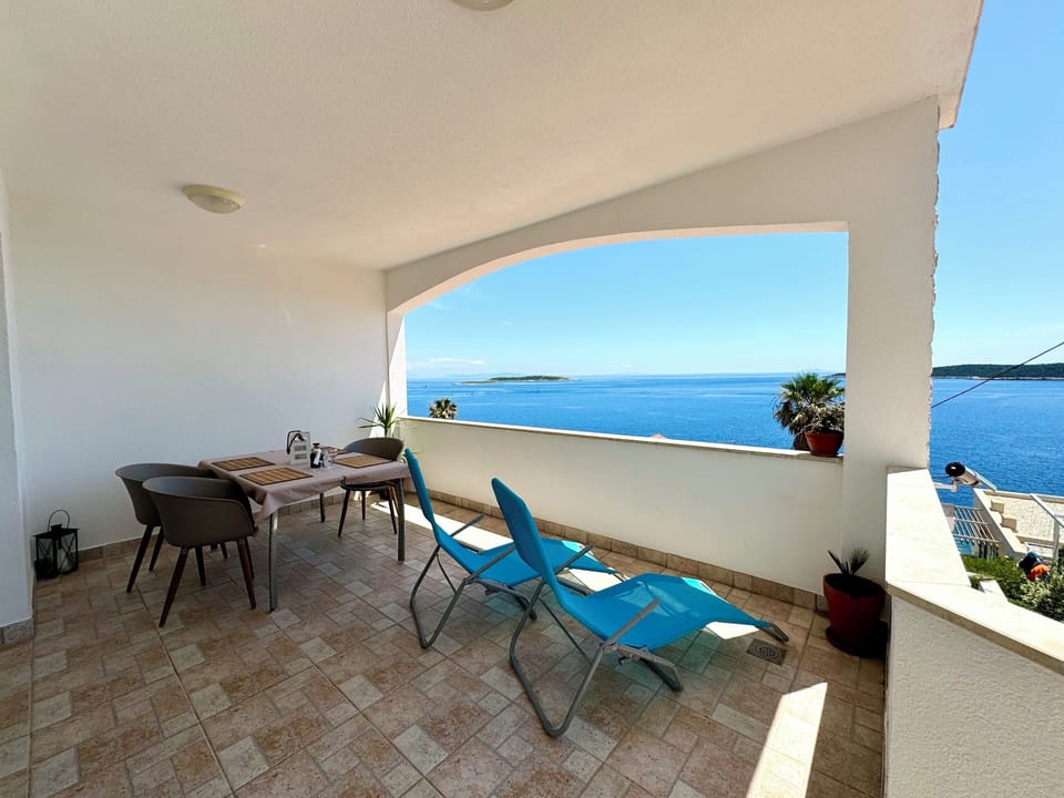 On the large terrace, equipped with garden furniture, you can enjoy your holiday properly. Our holiday apartment is located on the southeast side of the island of Vis in Milna bay. Furnished, with fully equipped kitchen, living room, bedroom with bed linen, towels (no beach) terrace with sea view and garden furniture. The apartments have air conditioning and LCD TV. From the sea they are cca 40 m away. In the district of 2 km are beautiful sandy beaches and guest house with excellent Dalmatian cuisine. Every day (exception Sunday) comes a delivery service with fresh pastries and fruit vegetables directly in front of the apartment house. You can find several stores with grocery stores in Rukavac (2km) and Vis (7km) from the apartment. In our gallery are identical photos of the surroundings.