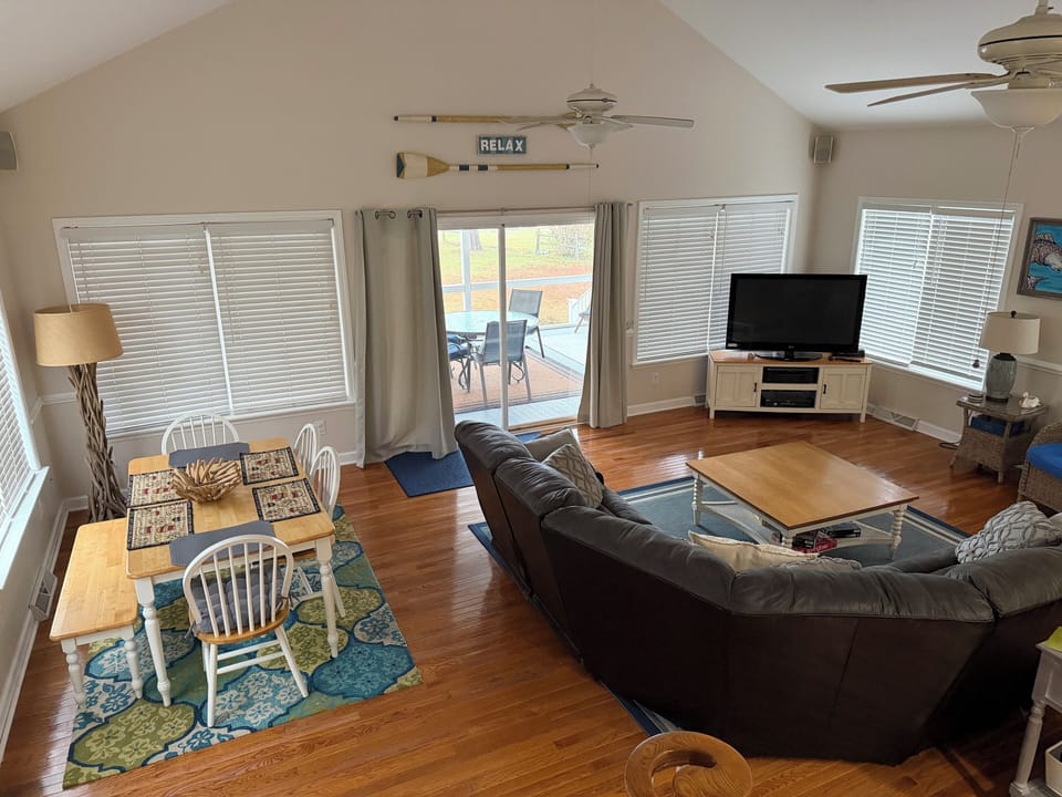 This is a great house and property. Plenty of room, with a beautiful view of the lake from the main living area. Kitchen was well stocked and we really appreciated that there were portable fans in addition to the ceiling fans in every room. TVs were easy to use. We loved the location on the lake and everything available to enjoy it! We made the most of our stay, using the kayaks, the fire pit, fishing from the dock, floating near the beach area. We did see one alligator across the cove area one day, but the rest of the time we just shared the lake with a couple cute turtles. We would love to return!
