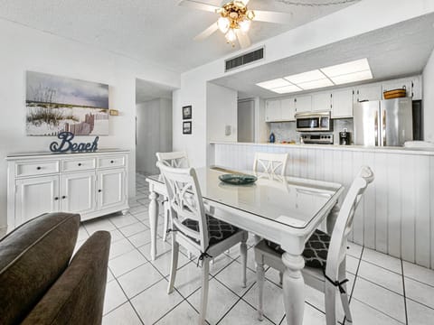 Dining Room - Adjoining Dining room table seats four, and there are two stools at the breakfast bar off the Kitchen.