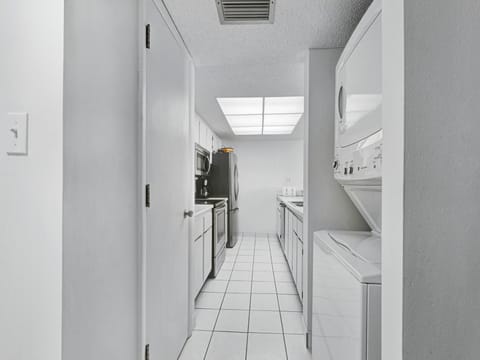 Off the kitchen, you’ll find a full-size washer and dryer.