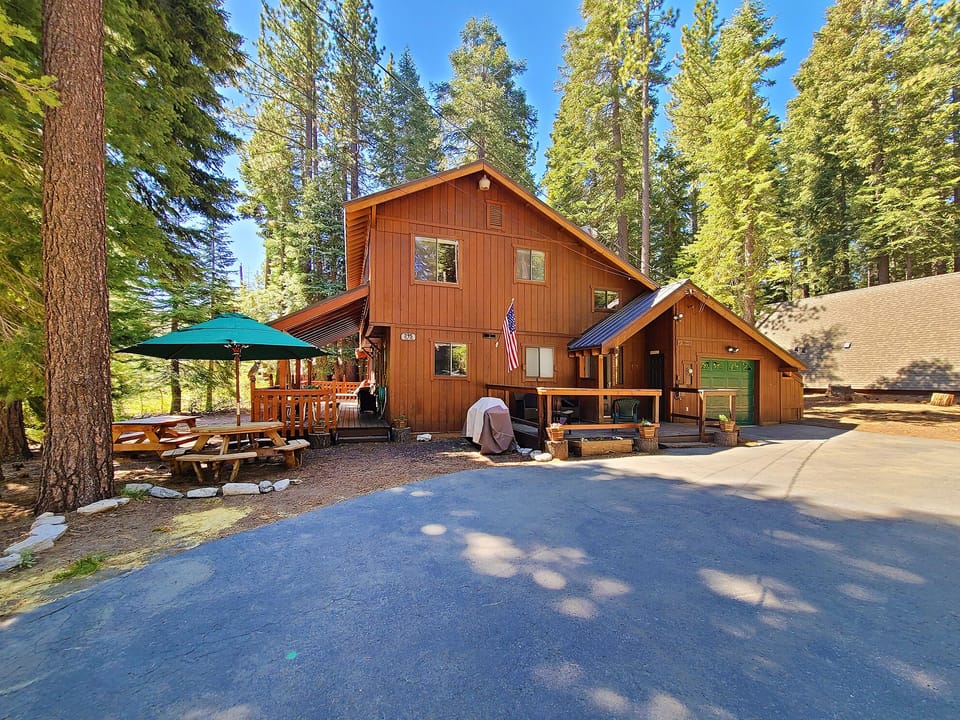 Inside, you’ll find a fully equipped kitchen with modern appliances, including a dishwasher, microwave, and disposal, plus all the cookware, dishes, and utensils you’ll need for your stay. The dining room table comfortably accommodates 10 guests. The home also features a washer and dryer, 52" flat-screen HDTV with cable, high-speed wireless internet, stereo with USB/Bluetooth connectivity, and a cozy gas woodstove for those cool Tahoe evenings. The bonus room upstairs also has a Roku TV with free cable, and you can stream your own movies. With level access and parking for up to five vehicles (in the driveway only, no street parking), it’s both easy and convenient year-round.