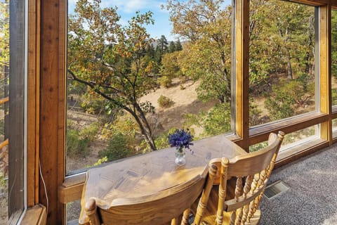 ✓ Dining area with expansive windows offering nature-filled views with every meal