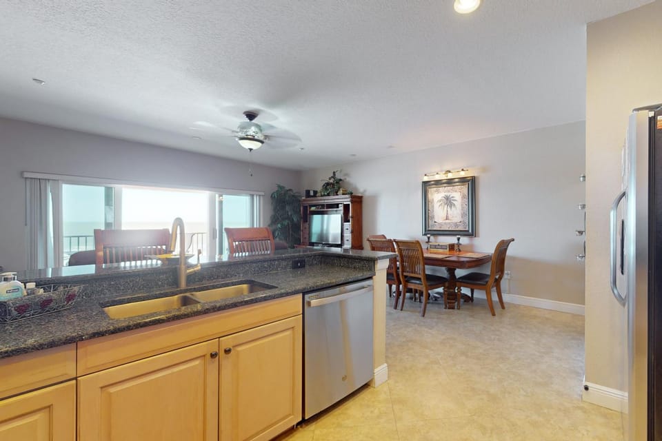 The condo was on top floor, awesome view of the ocean. Beautiful beach and not crowded in front of the condo. We absolutely loved the decor, the beds were so comfortable too. Living room has updated furniture...a leather couch and two reclining chairs...both very comfortable. The. Condo offers so much from a ton of kitchen accessories, drinkware, dishes etc (I do recommend adding a few kid size plastic bowls, the plastic plates were a winner). They also have games, books and also beach/pool toys in the cabana, for you to use. We didn't use any of that, being we had our own, but it's nice that they have it. Rent this condo, you will not be disappointed!!