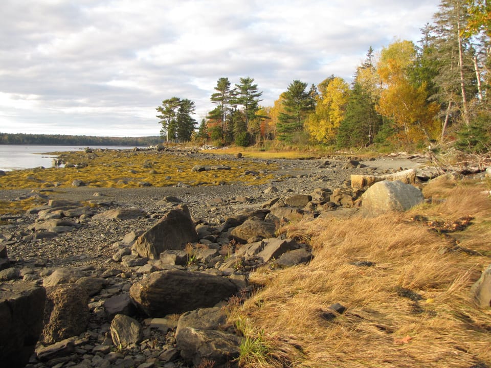 At low tide rocks draped in thick tangle of yellow-green and brown-purple seaweeds surround our pebble beach. These are called Rockweed and are an important part of our coastal ecosystem. The shore provides lots of chances for beach combing and exploring. A brook empties into the Bay on the south side of the property and encourages birds and other wildlife to visit.