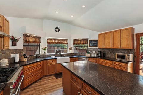 This bright and beautifully updated kitchen makes cooking for the group a joy, with tons of counter space and high-end appliances.