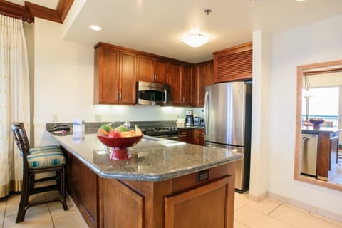 This expansive three-bedroom, three-bathroom penthouse offers jaw-dropping, sweeping oceanfront views and affords some of the finest resort accommodations found anywhere on the island of Maui. Bask in the azure glow of the Pacific from virtually any vantage point in the villa, or relax on the spacious lanai as you take in yet another one of Maui’s world-famous sunsets from one of the best seats in the house.