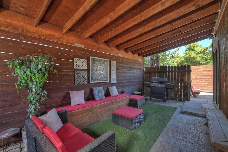 ✔Kitchen: Stainless steel appliances, gas stove, oven, microwave, coffee pot, granite counters, dining area, and backyard access