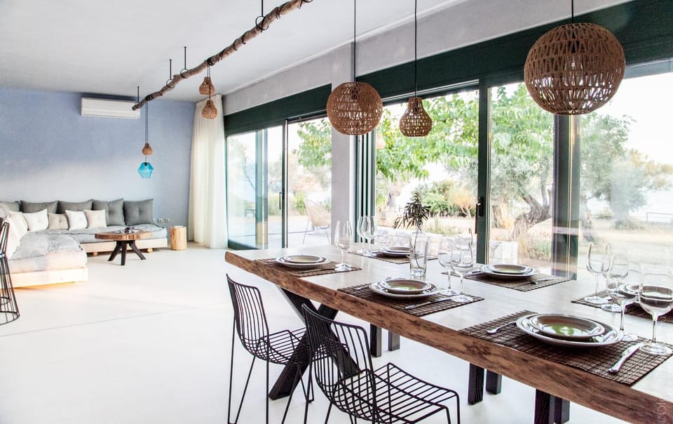 The villa is located a 10-minute drive from Mitilini town center, yet it offers complete serenity. The place is few steps from a private beach, in the middle of olive trees, beautifully designed ground floor of a three story villa. It is equipped with everything you might possibly need. Ignatis is a super kind person and an excellent host. In addition to plenty of soft drinks and water, there was also a good selection of alcoholic beverages available for guests.
