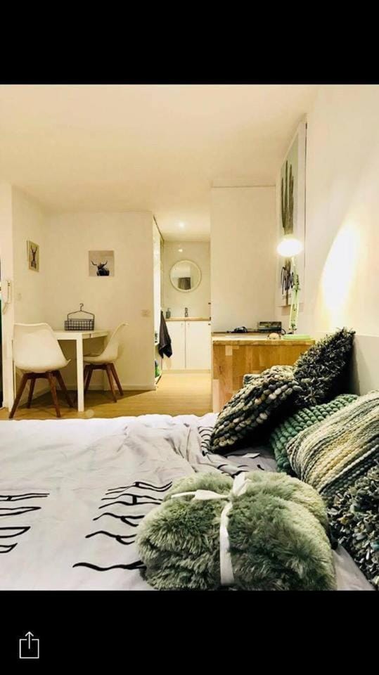 La ubicación es perfecta, al igual que el alojamiento, es un departamento de un ambiente con todo lo necesario para disfrutar tu estancia, tiene cocina, baño y una cama super cómoda, es lindo y moderno. Si bien el baño tiene una distribución un poco extraña no es algo que realmente moleste si vas acompañado con alguien de confianza. Debes pasar por el barrio rojo al llegar pero luego para ir al centro y otros lugares no volvimos a pasar por ahí así que no fue algo molesto. Pasé navidad aquí pude cocinar, cenar y estuvo perfecto.