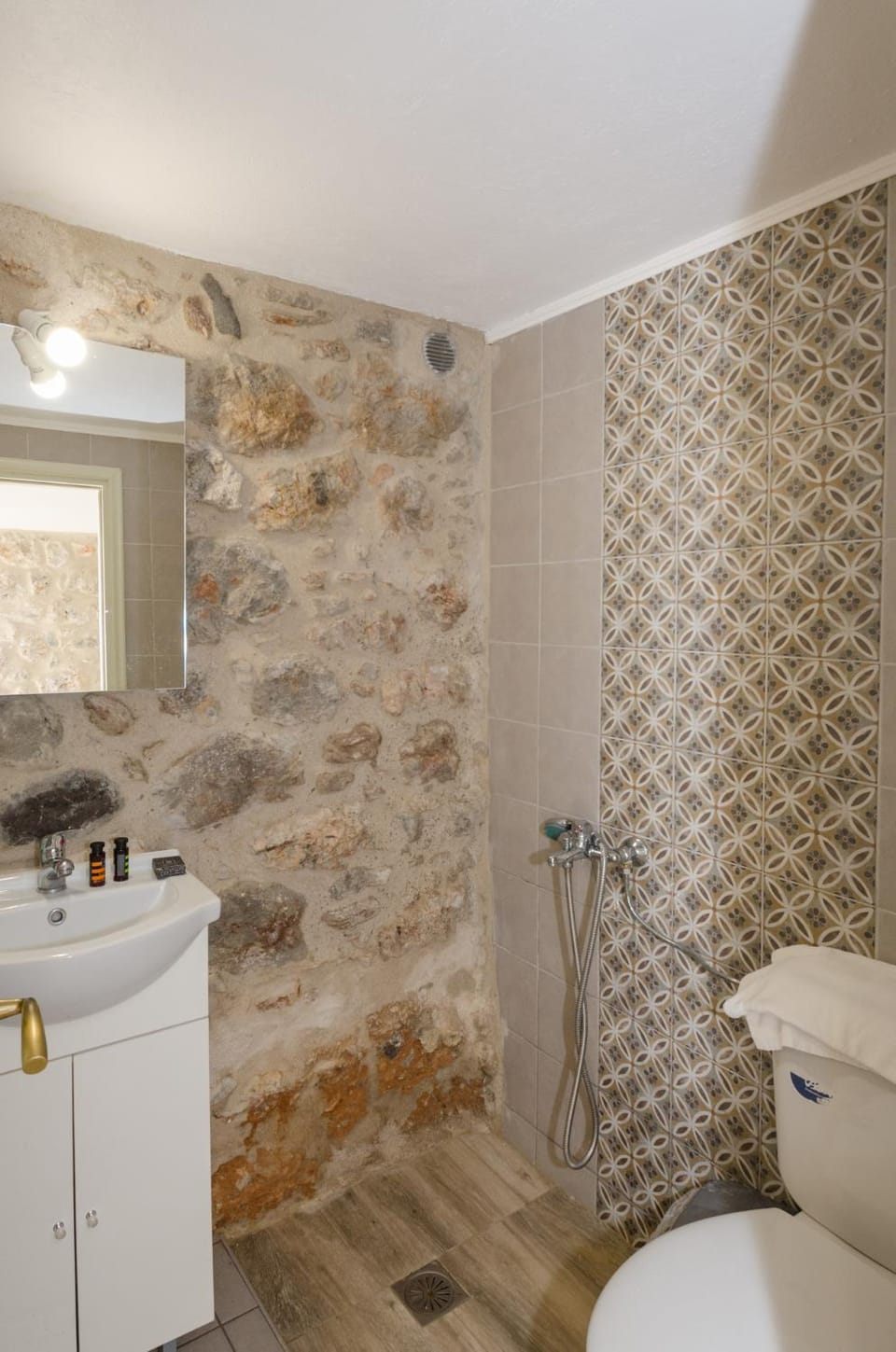 Η wc είχε λίγο φτωχά υλικά εκτός από τον τοίχο πέτρας κ το τζάμι στο ντουζ που ήταν υπέροχα. Επίσης ένα πιο όμορφο κρεβάτι σαν του « folia” χρειαζόταν! Επίσης μια ντουλάπα λίγο πιο «έξυπνη»!