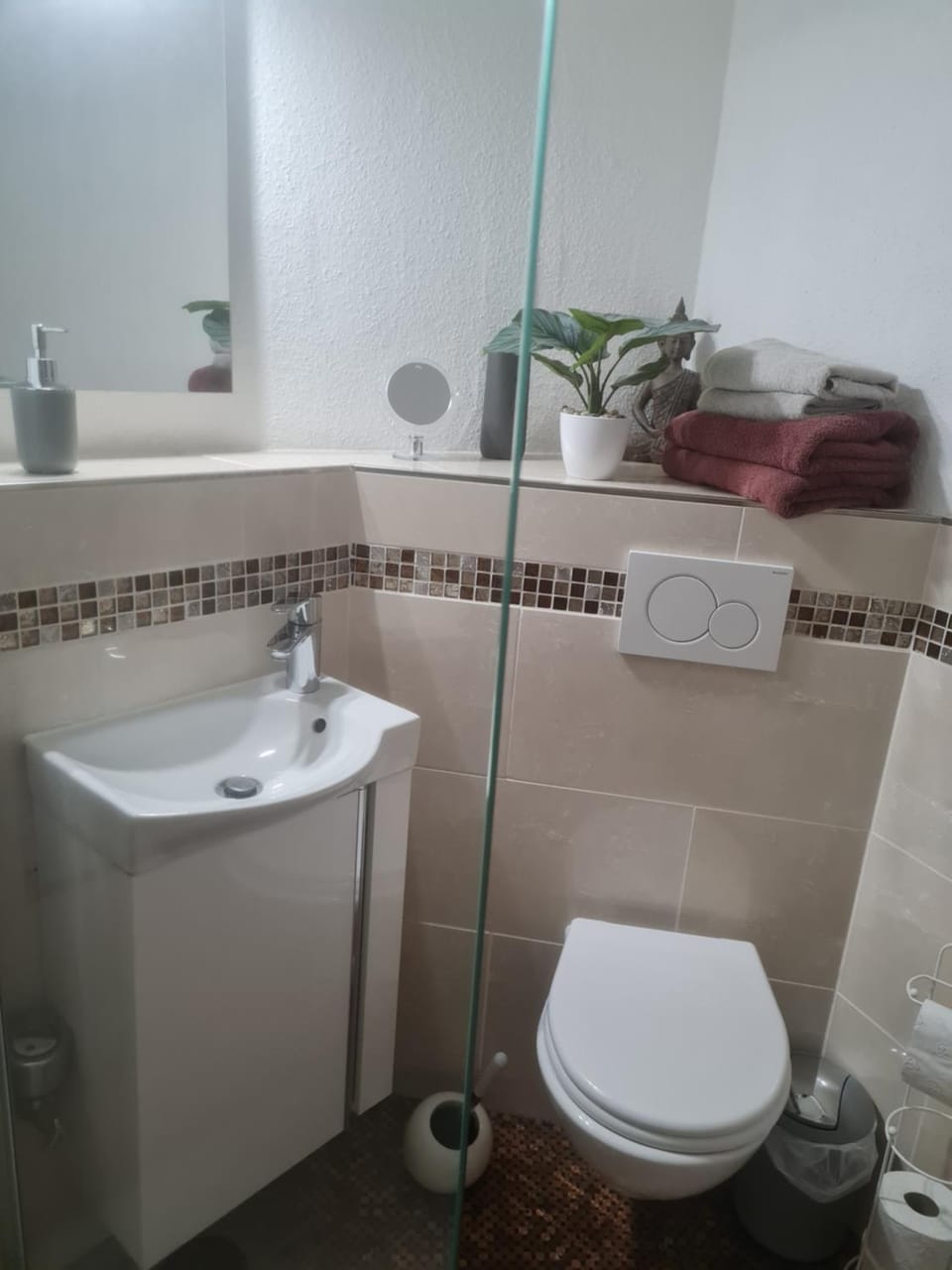 Das Apartment ist nicht Allergiker geeignet. Im Wohn-Essbereich ist Teppich ausgelegt, besonders unter der Heizung waren sehr viel Staub und Flusen. Da ich Frühsport mache und dafür auf den Boden gehe, verändert sich der Blickwinkel massiv. In der Küche fehlte mir eine Info zum Mülltrennsystem und die Geschirrtücher, durchlöchert, hatten auch schon bessere Tage gesehen. Leider gab es auch keinen frischen Putzschwamm oder Abwaschlappen. Die Tapeten haben viele Löcher und Flecken, die Fensterfront ist sehr dreckig und die Matratze extrem weich. Letzteres ist aber Geschmackssache. Was allerdings ein absolutes No-Go ist. Die Apartmenttür kann von innen nicht gesichert werden. Mit einem Schlüssel, kann jederzeit von draußen jemand hinein. Für Alleinreisende Frauen kein angenehmes Gefühl. Wenigstens eine Kette sollte an der Tür angebracht werden.