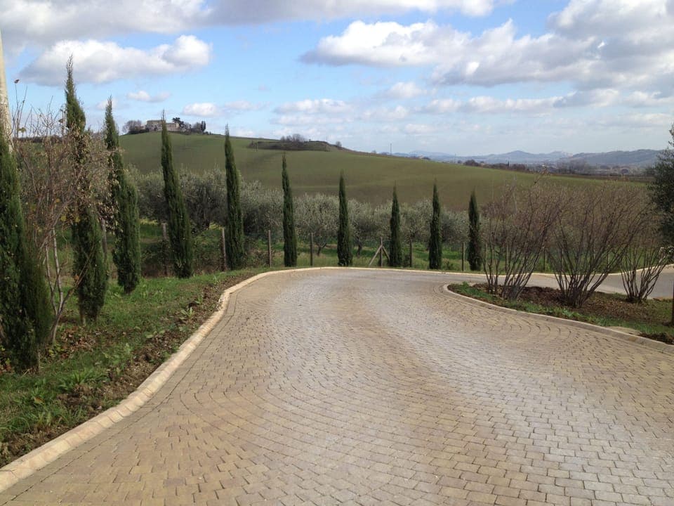 This villa is located in the Marche countryside. A gorgeous hilly terrain halfway between the mountains of the Apennines and the beautiful beaches of the Adriatic. The last house on a dead-end road, privacy and silence dominate this peaceful setting. The farmhouse was carefully restored for over 4 years, while every detail was painstakingly looked after by a family building the house to last for generations.