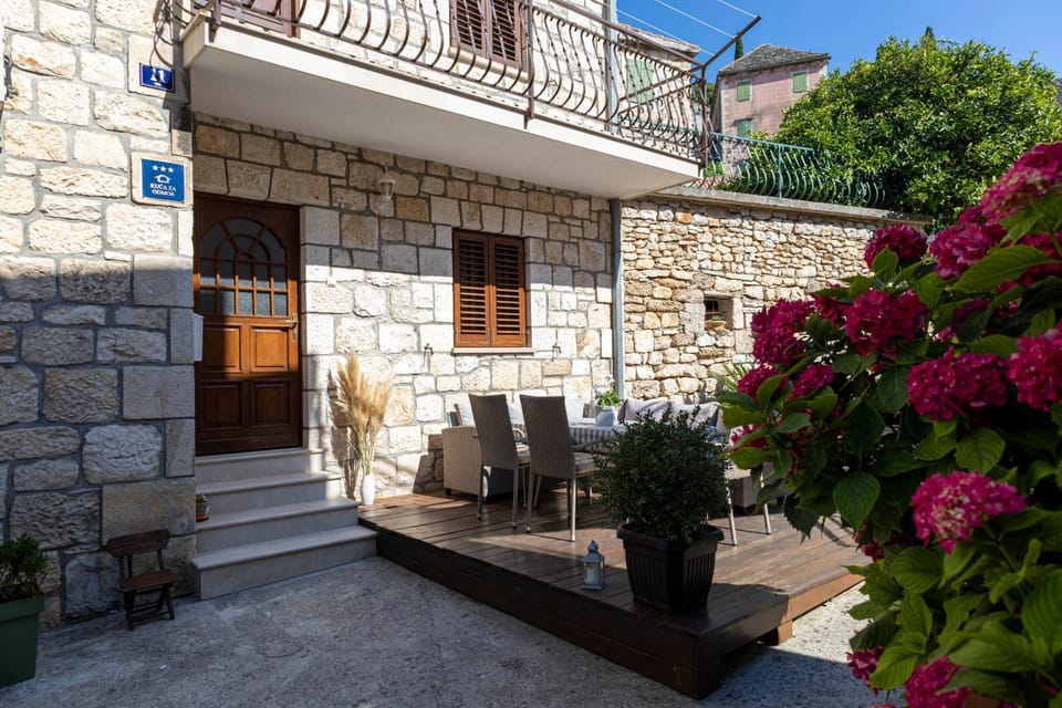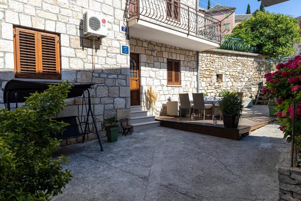Featuring a garden with a children's playground, sun terrace, and free Wifi, Holiday house "Dolka" is a vacation home in Postira. Guests can benefit from a balcony and an outdoor fireplace.