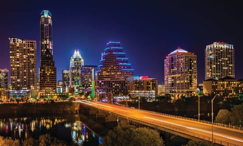 A Texas Culture Mecca. Craving a concrete jungle that radiates energy like New York minus the overwhelming crowds? Austin, Texas, is known for its quirky nature and hodgepodge of musical and cultural tastes. You won't find any cowboys or ranges of cattle in this city. Instead, you'll marvel at the glittering lights of this small-scale metropolis from the comfort of your resort, equipped with modern amenities to make you feel right at home. A stay in the city has its perks, too. You're conveniently located just minutes from Austin�s local attractions, diverse eateries and vibrant venues. It's bound to make a big impression!