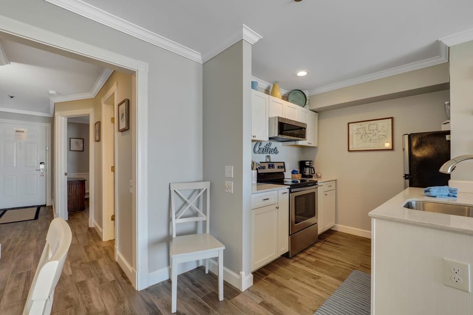 Pubic hair in bath, many dust bunnies along walls in bedroom, lamps did not work, fireplace a fun touch, but seemed a little scary (blue, weak flames, not sure it was safe). These things made me feel concerned that everything had just been abandoned for awhile, making the unit feel tired, and sort of like it had been given a once over but not really. Yet the floor plan was great, the decor was cute and there were nice dishes and so on for a quick snack or storing stuff in the (loud) fridge. The bath and bed cleanliness problems affected my super happy initial impression greatly. The host was so friendly when she called and I appreciated her clear instructions since I was coming in after hours. I'm sorry my toddler grandson snuck the chocolate mint into the bed and I did not learn until morning. :( Thank you!