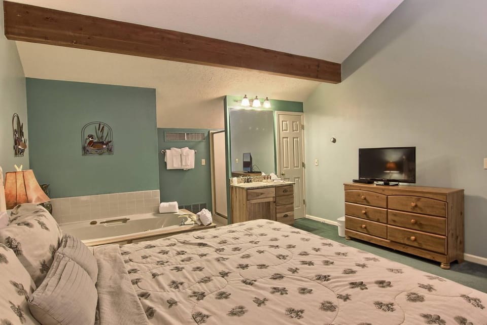 Indulge in a peaceful retreat at Dog Friendly | Loft Style | Downtown Charlevoix | Indoor/Outdoor Pool, our elegant Apartment in Charlevoix. Enjoy amenities including Air conditioning, Balcony/Terrace and Fireplace, and more.