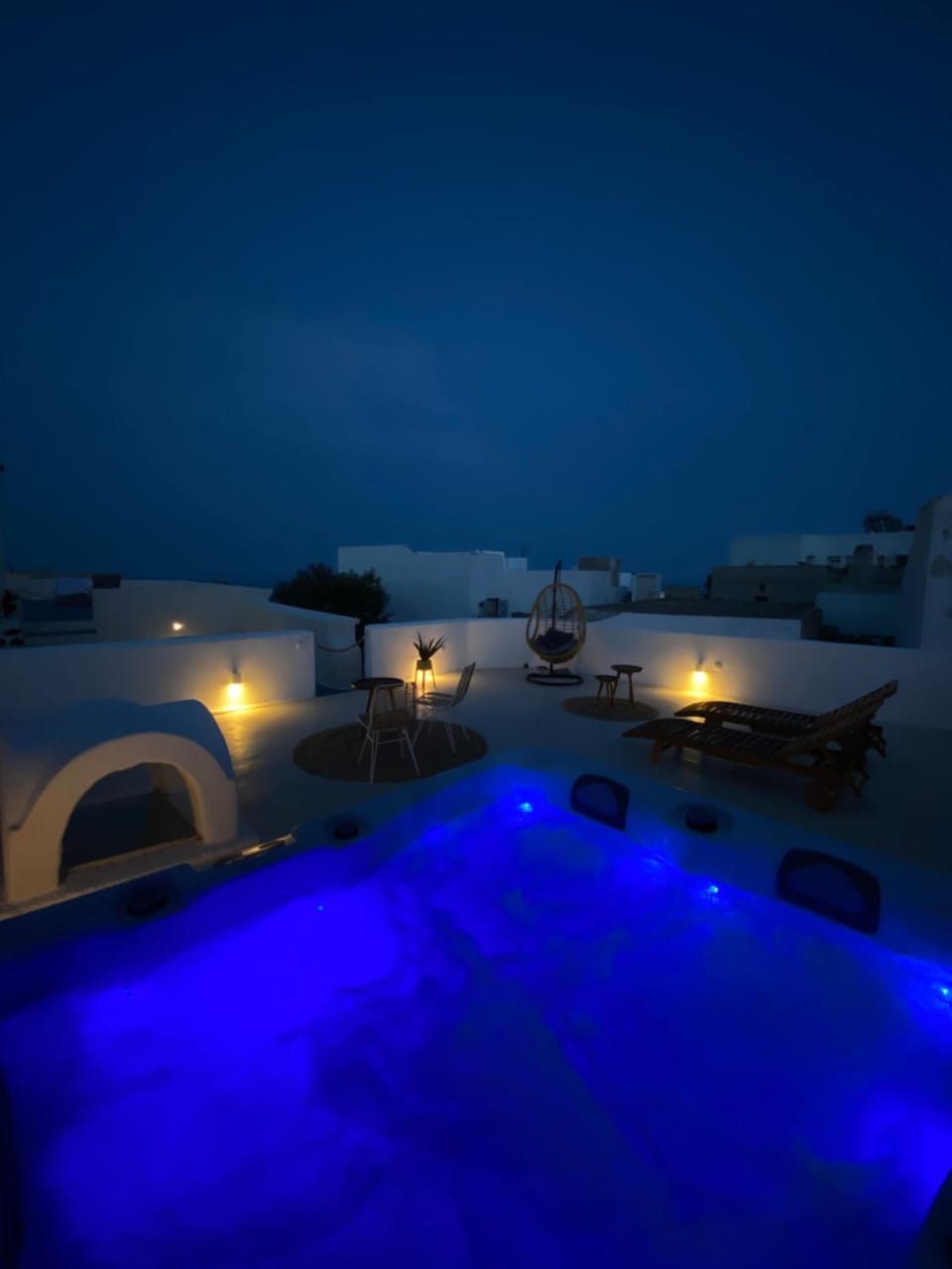 What a gem in the middle of Fira. Nikos is a very friendly host. The location is 7 mins walk from Fira center/bus stop (and from there you can take buses to all parts of the island). Beautiful interior inside the room and felt very authentic. The cherry on top is the balcony and the private hot tub. The balcony/hot tub is directly over looking a beautiful sea view. It's the sunrise side of the island, NOT the sunset side, but believe me it's such an amazing view we decided to skip the sunset in some days and simply spend time in the Hot tub and look at that beautiful view in the evening too.
