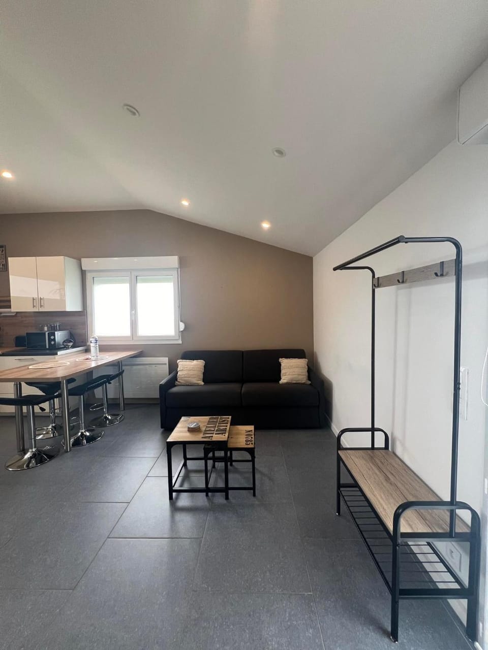 Nous sommes arrivés par très mauvais temps et ne savions pas comment entrer dans notre logement, nous avons dû un peu chercher ( dans la tempête!) mais notre hôte nous avait avertis que le logement serait ouvert. A partir de là tout s'est bien déroulé, le logement était accueillant et propre, très bien équipé ( four, cuisinière, micro onde, prises électriques, machine à café, grand frigo avec compartiment surgélateur, vaisselle en suffisance,hotte, meubles en suffisance et confortables, y compris la literie très agréable, volets pour occulter) Eau chaude aux robinets et douche assez rapide, et radiateurs efficaces. Nous avons regardé 1h la TV et rien à redire, mais n'avons pas réussi à nous connecter au Wi Fi, un peu compliqué.