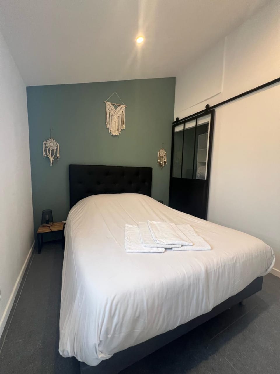 Salle de bains un peu petite mais il n'y a pas de miracle, tout le reste était assez spacieux. Le parking à côté du logement est très pratique.