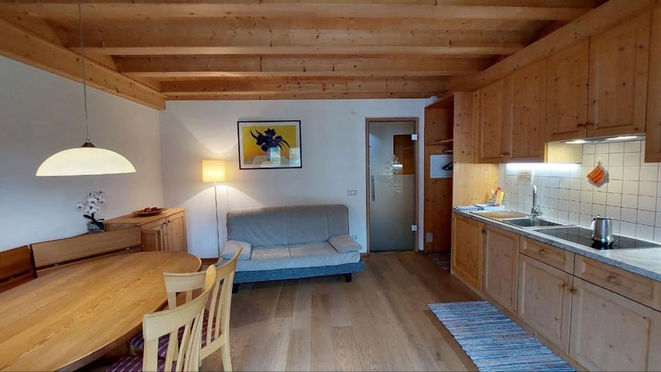 The chalet was great, with very comfortable rooms and an amazing view of the mountains from our balcony. Checking in and out was really easy thanks to our great host. Our host provided us with a transport pass for the week, which allowed us to get around easily & also gave some really good suggestions for local activities and hikes that we could do during our stay. There are also lots of great restaurants, bakeries and shops within walking distance.