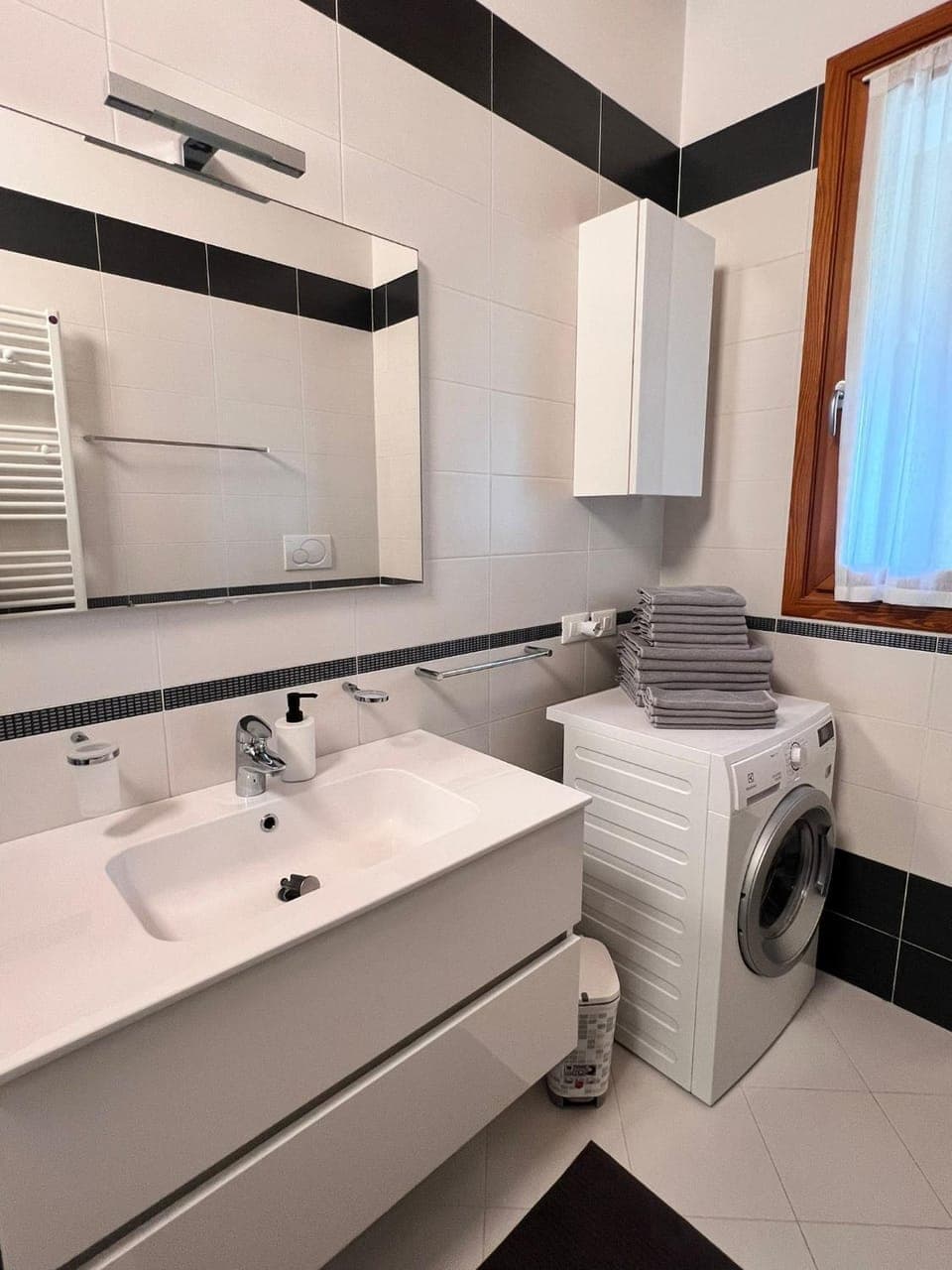 La casa è super pulita e tutto è nuovo e perfettamente funzionante. In casa c’è tutto ciò che serve, persino la lavasciuga.