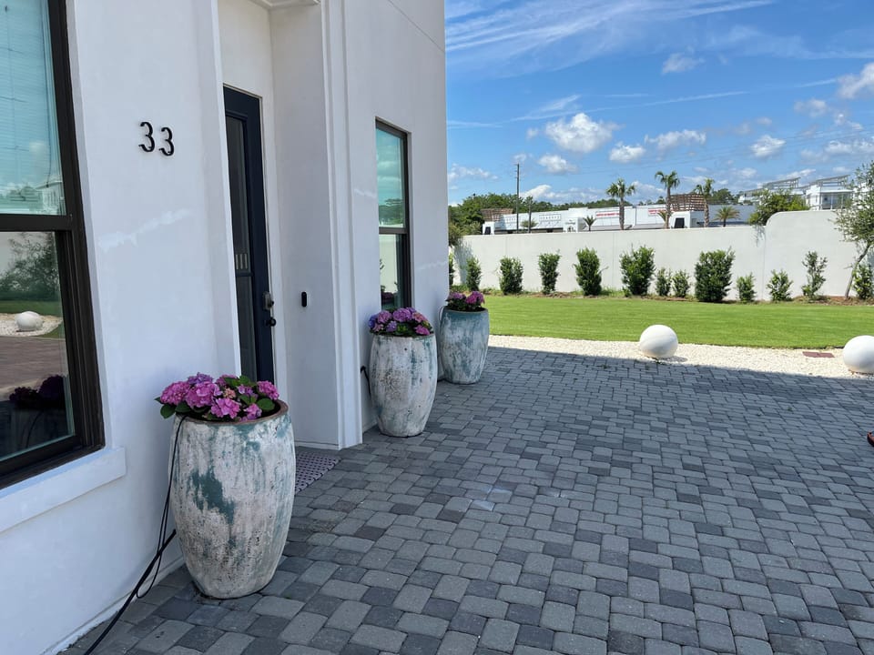 This new neighborhood is being built out as an 11-house community that is themed to blend in with the new surrounding developments on the east end of 30A. Exteriors are white, hard-coat stucco with every house having unique shutter colors. Interiors have shaker cabinets, white quartz, professional kitchen appliances, nickel gap shiplap wall siding, built in bunks, hardwood floors, soft LED lighting, NEST Thermostats, and all the items you need to be comfortable during your stay such as a Dyson Animal cordless vacuum.