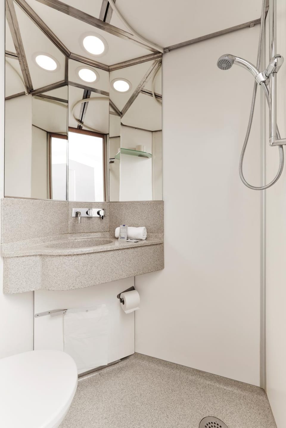 Understood that the bathroom is gonna be little but luckily i dont have long legs as i was sitting with the knees under the sink. maybe also move the toilet paper hanger away from the shower
