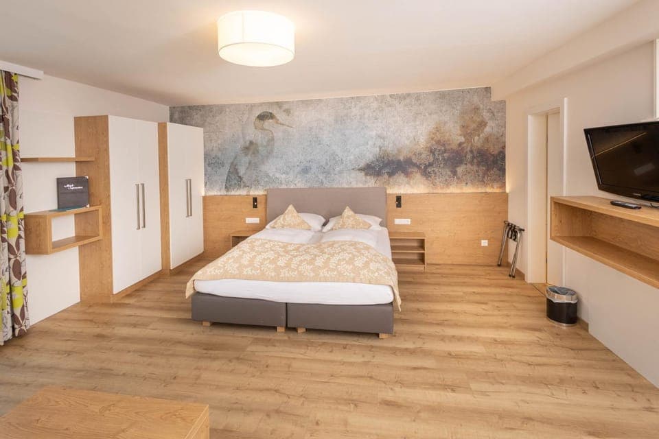 Everything was super! Great location, cozy rooms with beautiful view. The breakfast was very good, enough and delicious. The view from the breakfast room is wonderful. Very kind, nice and helpful stuff. Lots of supermarkets are near and the bicylce rental is also not so far.