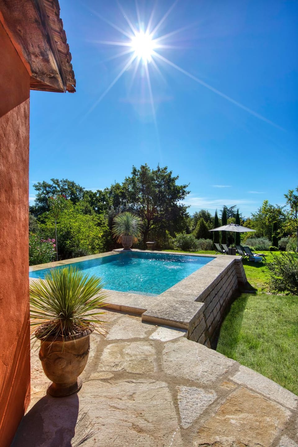 It is an old noble house (castle???) in a parc. Difficult to reach on a bad maintained road cars get scratched through the bushes. No reception . Just a friendly lady greeting you outside and handing you the key telling you your room is upstairs. The room vas nice with a good wet area. The terrace was however on the top of the roof of the bedroom reachable through a narrow stair. The floor of the terrace was gravel poorly furnished without umbrella sunshade. The room had no safe facilities. Parkings are in dusty areas with no possibility of shade and due to high temperatures you’ll find your car boiling.
