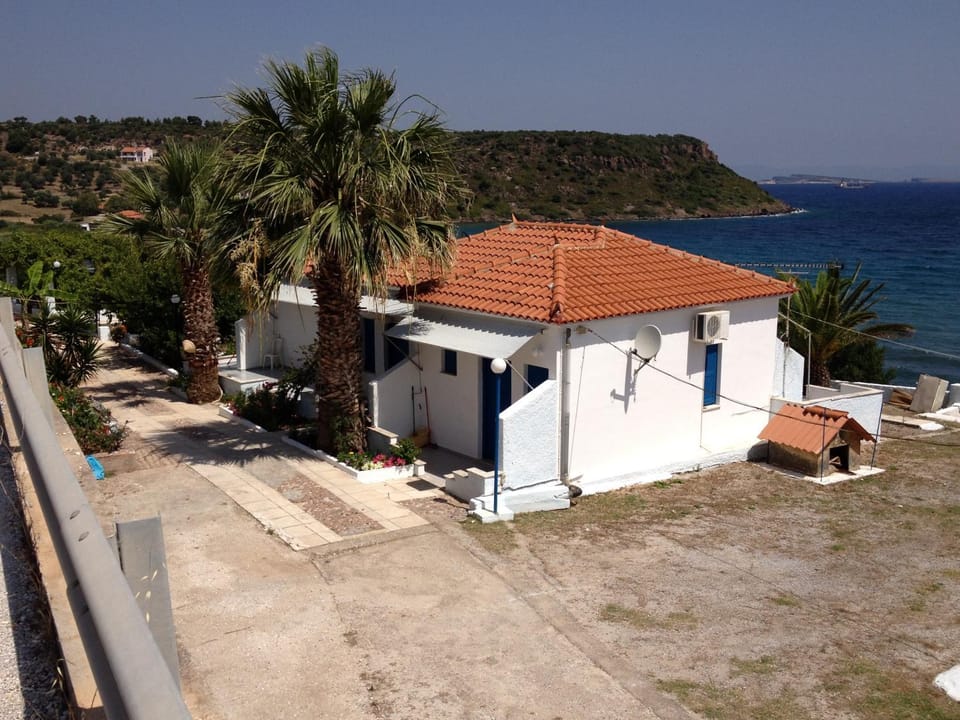 The view was excellent. It is literally near the beach and you can walk to the beach in 3 minutes. but special thanks to Ana and Kostas.. They really took care of us and gave us traditional food from common turkish-greek cuisine. Even though it was not specified in the booking information. The room was very tidy and clean and we had a balcony with a table, we enjoyed our evenings in that balcony.