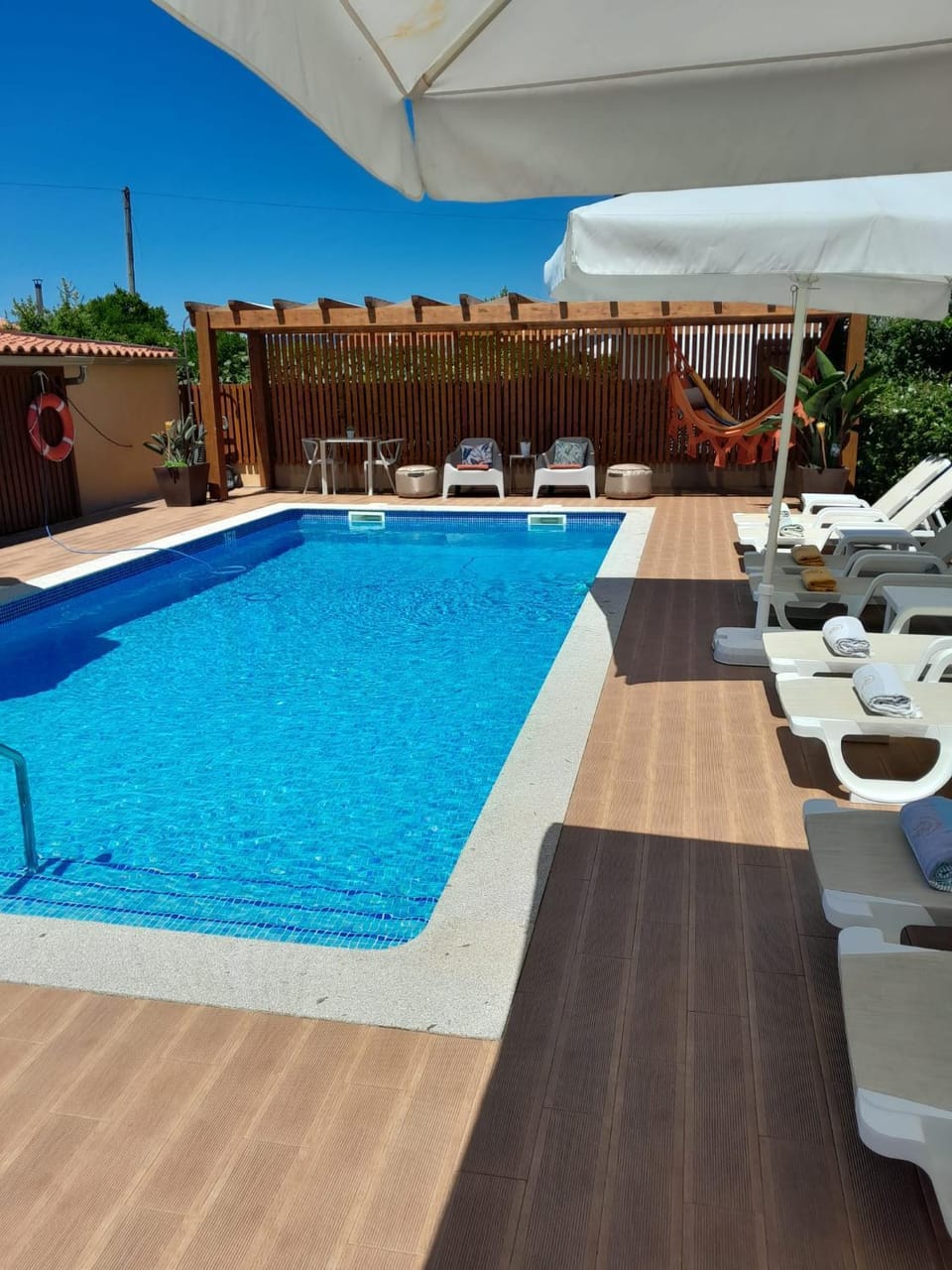 Yes, a swimming pool is available for use at Domus Graciosa. Enjoy the water!