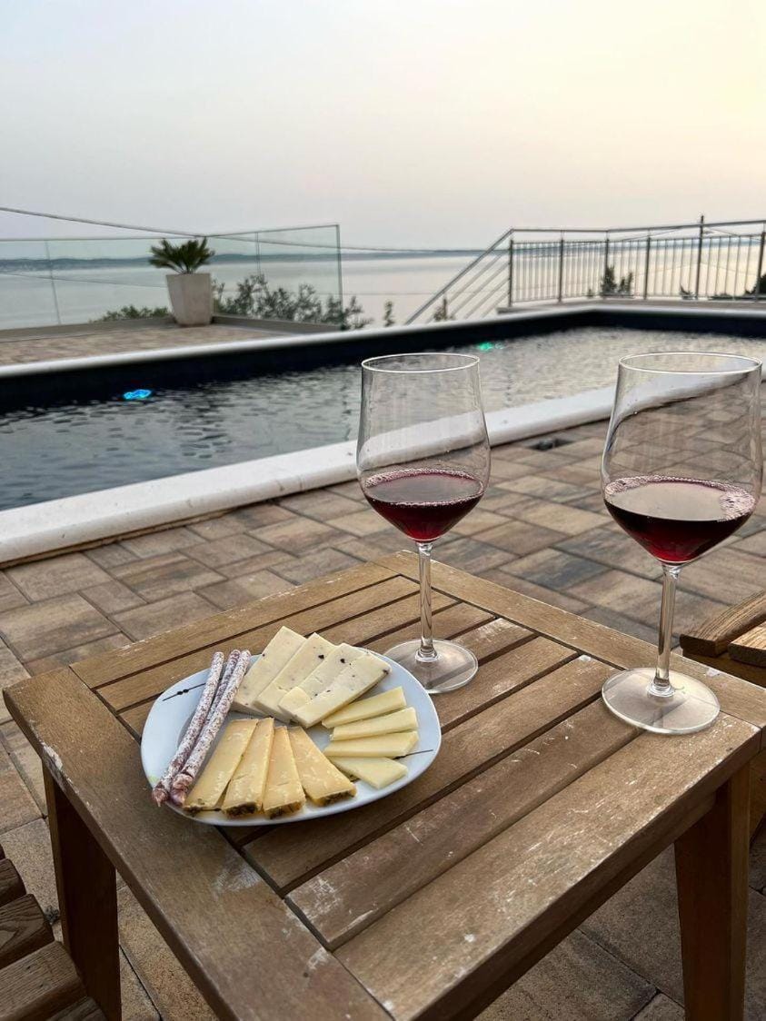 Lokalizacja w spokojnej okolicy, z dala od centrum, ale osoby ceniące ciszę i spokój na pewno docenią jej atuty. Miła gospodyni, która zawsze w sposób nienachalny służyła pomocą i dobrą radą. Duży taras z widokiem na morze i stołem obiadowym, strefa basenowa i czystość w apartamencie oceniam na 10. Na dzień dobry znaleźliśmy kilka niespodzianek w lodówce a na dowidzenia zostakismy obdarowani nalewką.