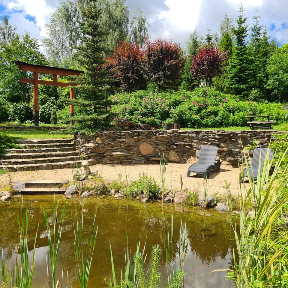 Przepiękny ogród i domek ukryty wśród brzóz, staw kąpielowy i plaża -super, żurawie pokryte rdzą urzekły nas niesamowicie, wszelkiego rodzaju altanki i miejsca do grillowania przeszły nasze najśmielsze oczekiwania. Świetne miejsce jako baza wypadowa, blisko do morza i na różne spacery. Byliśmy
