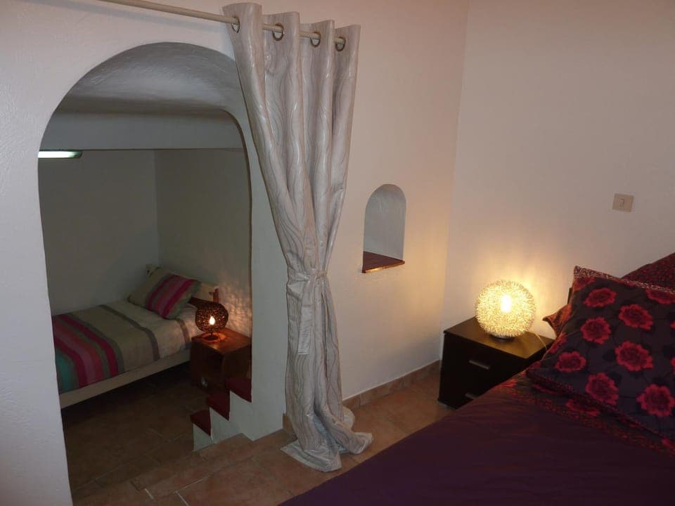 Second bedroom only accessible through 1st bedroom with a curtain to provide privacy, but we decided to treat it as a fun factor.